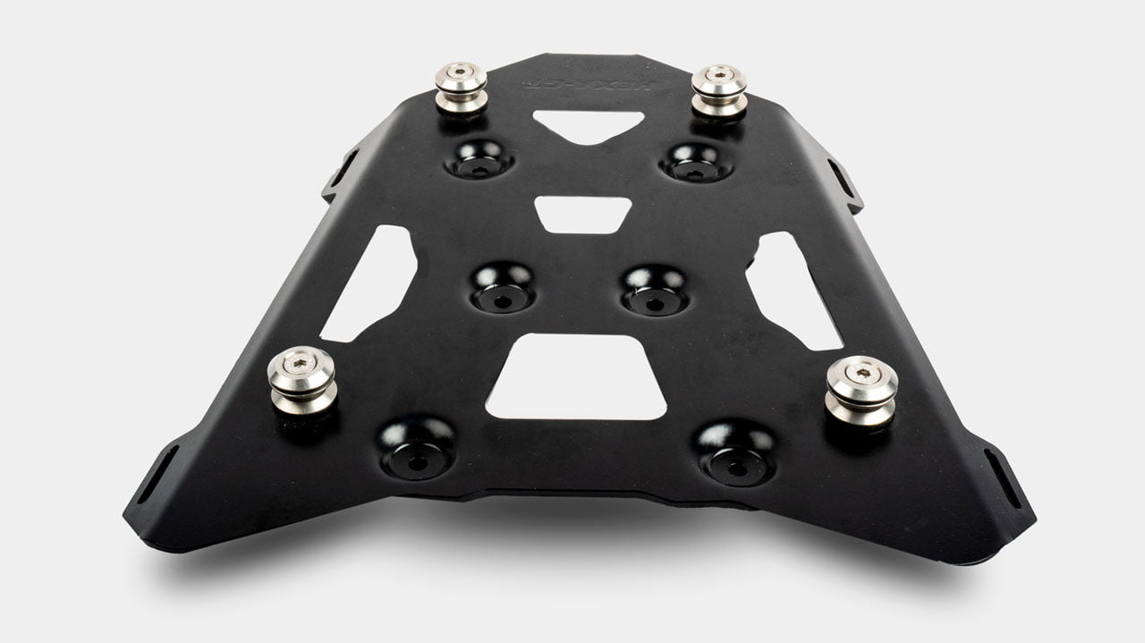 The Hexa GT Carbon steel Top rack is expertly crafted with high-quality materials, and is tailor-made to fit various adventure motorcycles, perfect for securely transporting our Boulevard and Voyager Top Cases.
